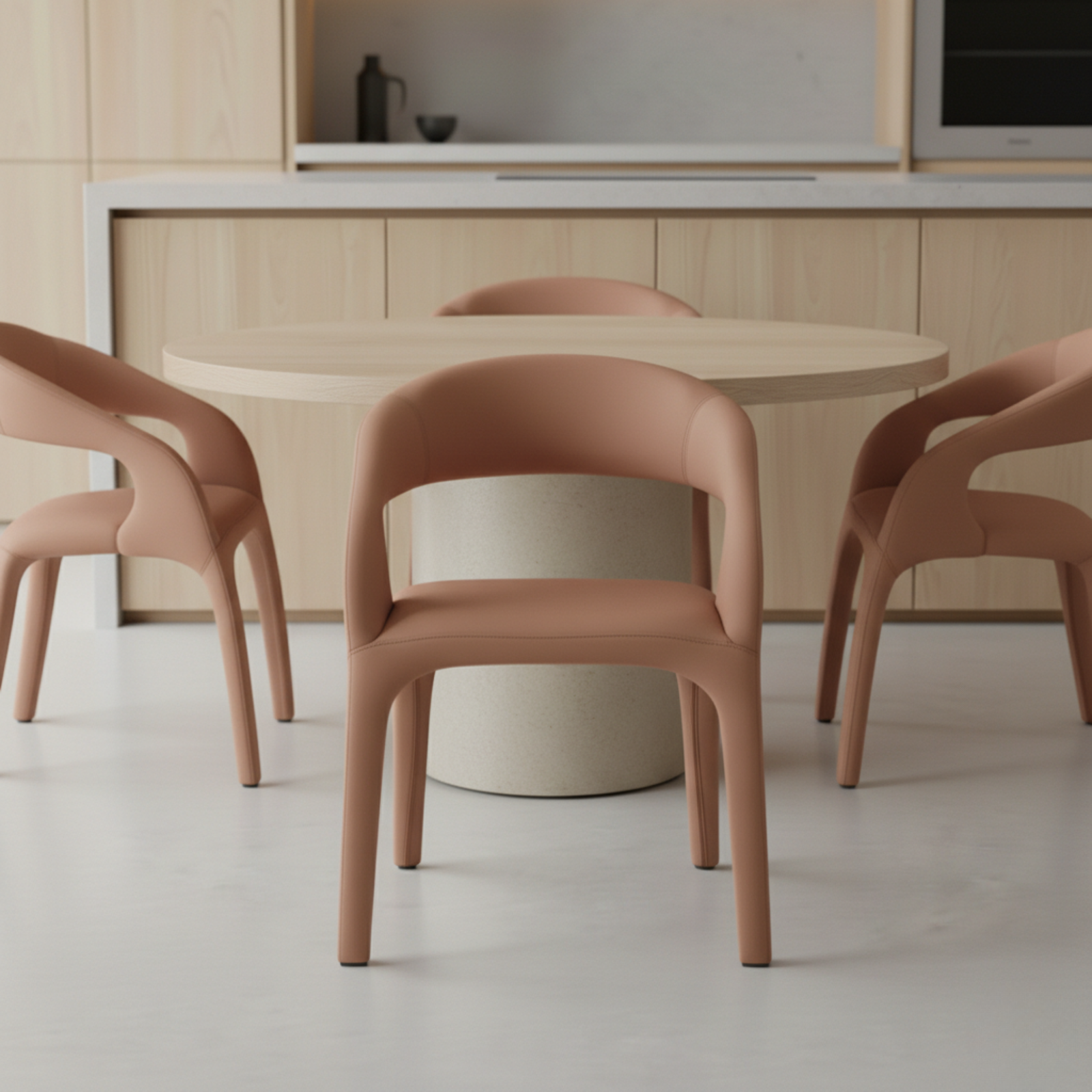 כיסא אוכל בעיצוב מודרני עם נגיעה קלאסית, המתאים לשימוש יומיומי סביב שולחן האוכל או בחללי אירוח שונים. הכיסא עשוי שלדת ברזל מצופה בד דמוי עור איכותי ונעים למגע, עם מושב נוח לישיבה יציבה ותומכת. משתלב בקלות בפינות אוכל ביתיות, מטבחים וחללים מעוצבים, ומציע מראה מסודר ונקי לאורך זמן.