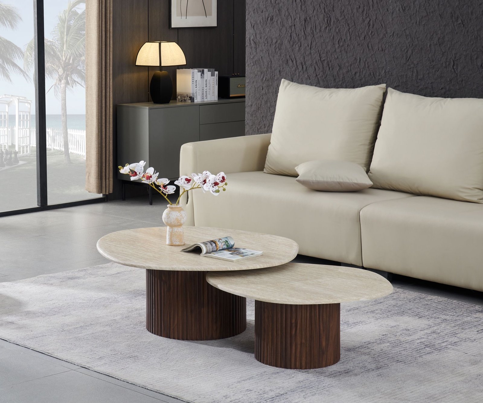 סט שולחנות סלון עגולים בעיצוב מודרני ואלגנטי .